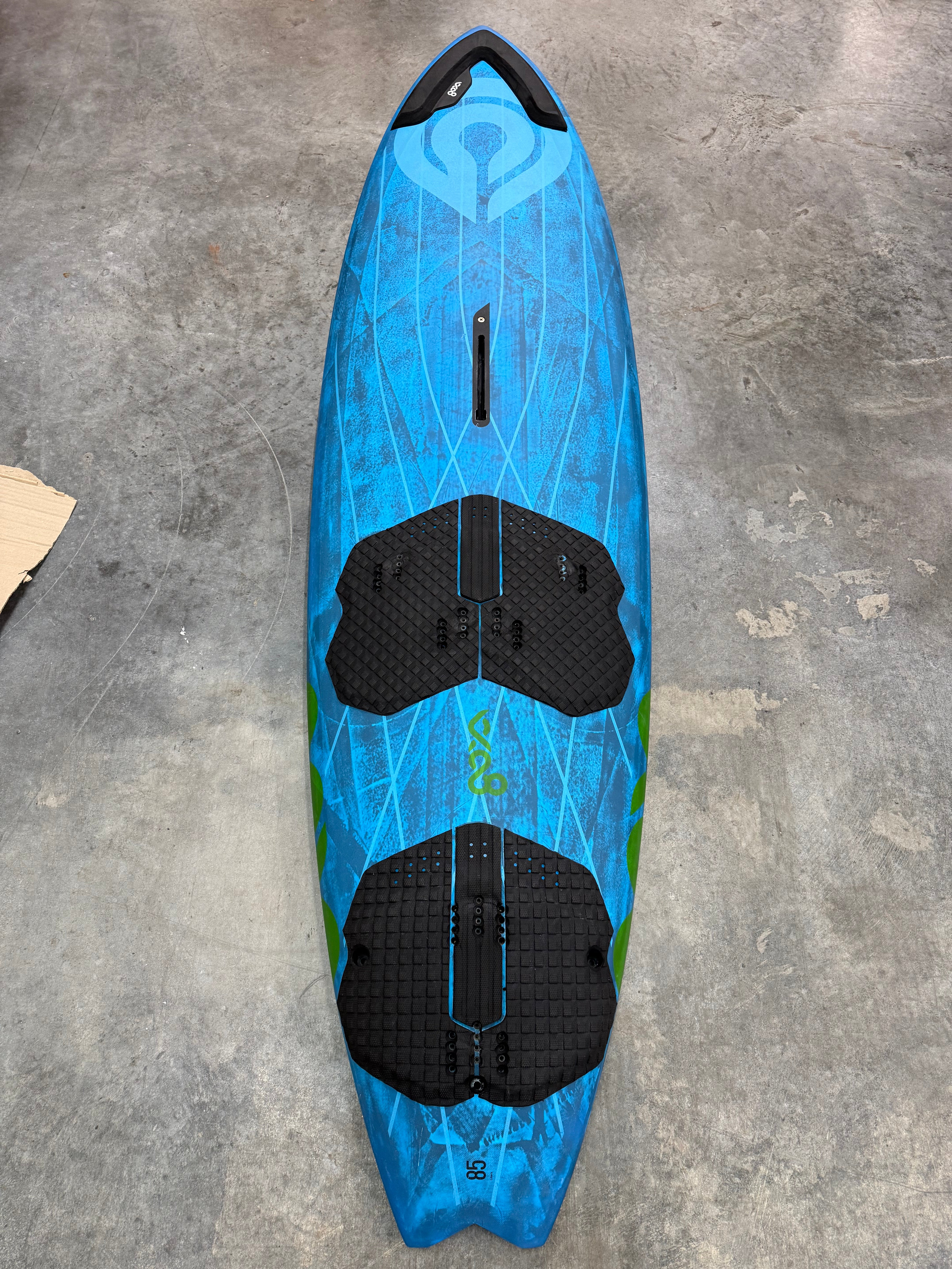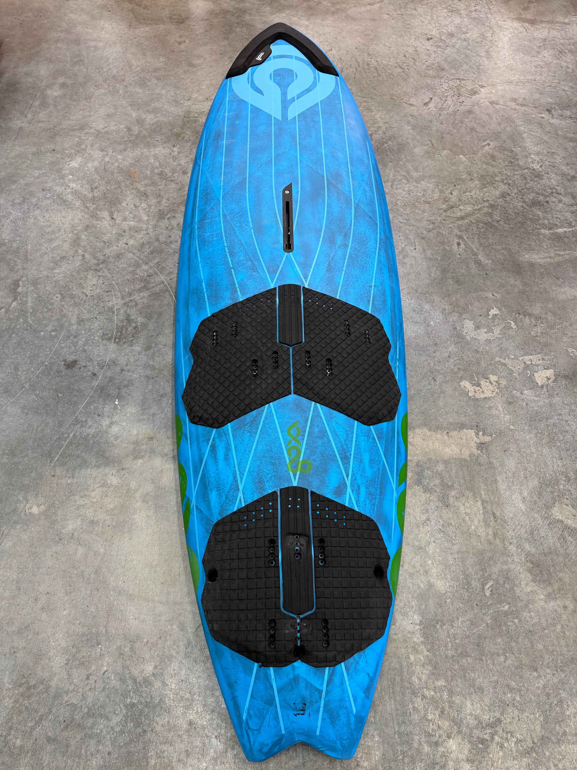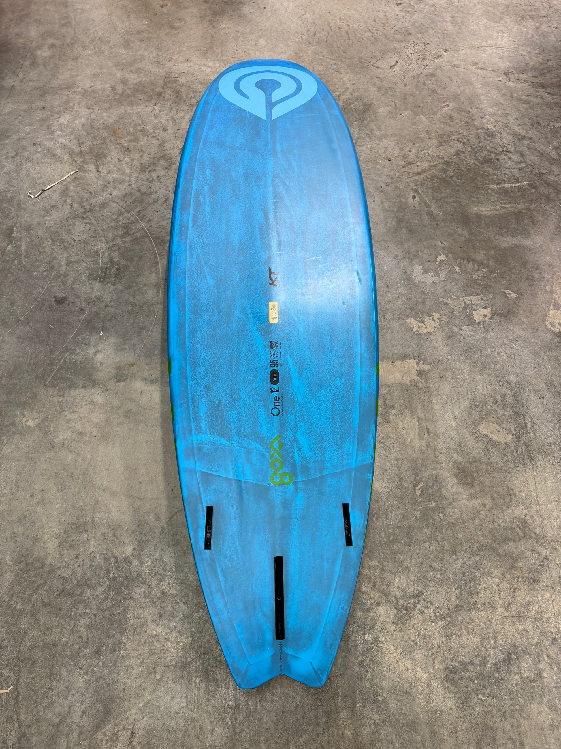 With inboard and outboard strap position inserts, Hyper Skin GW, High Density Full Sandwich construction, and Carbon Monocoque technology, the One 12 Carbon offers unmatched stability and responsiveness on the water. Finished in Neon Blue Tech-Reveal GW over Carbon with Fluo Lime artwork and black pads, this board not only performs at the highest level but looks stunning while doing so.