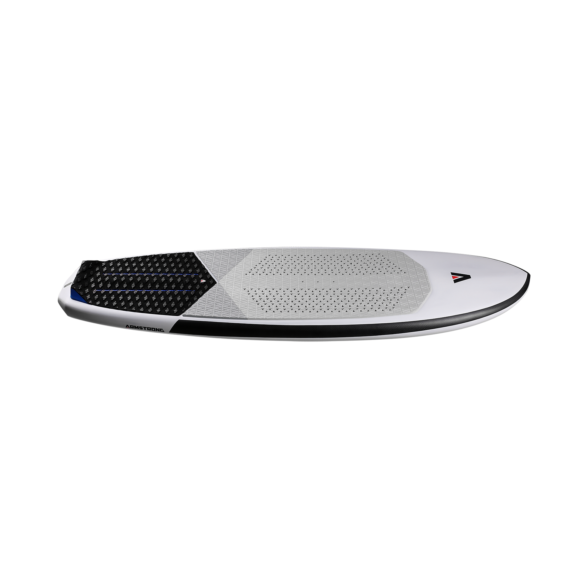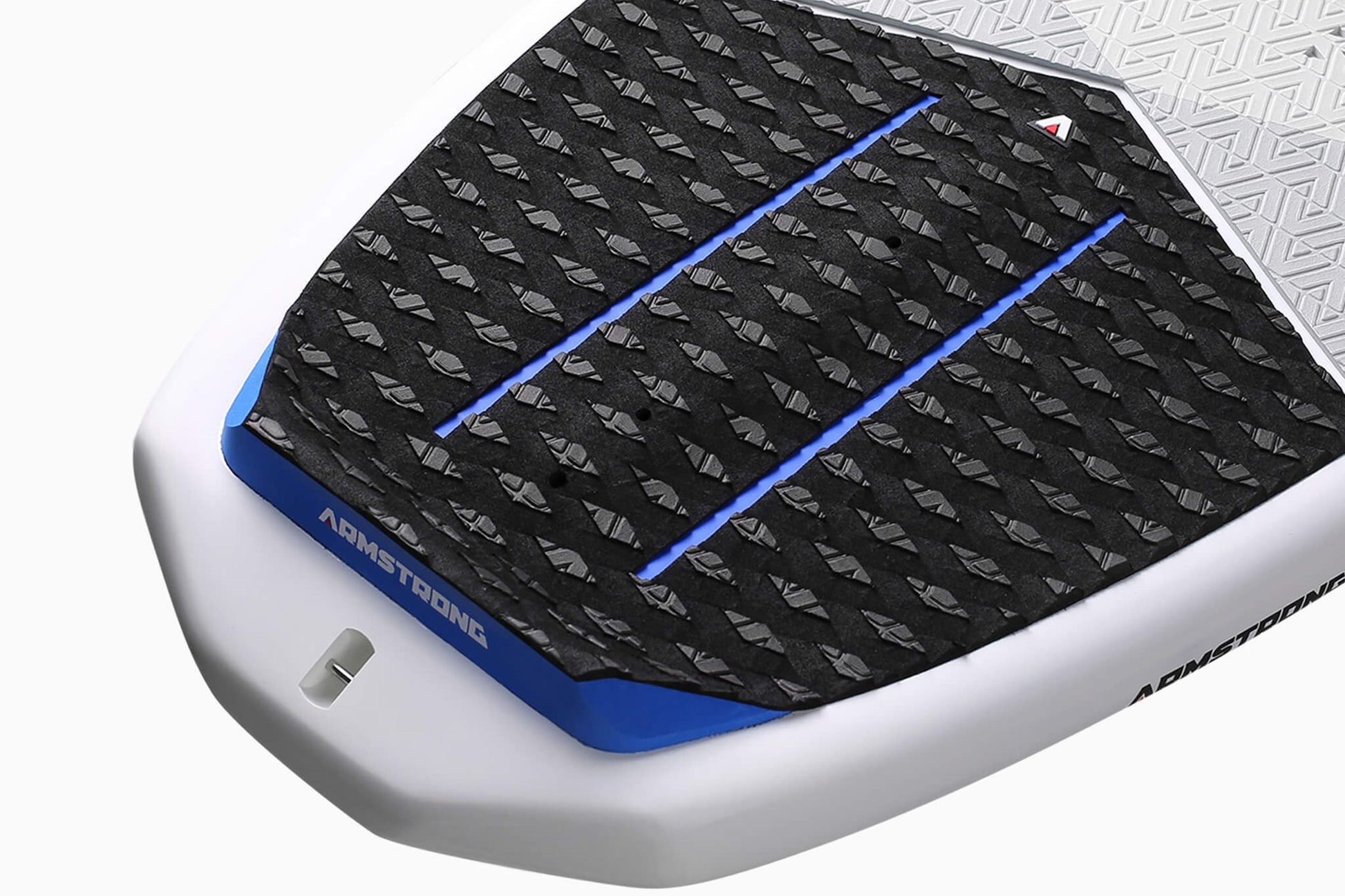 The Surf’s deck grip is tailored specifically to provide maximum control and comfort to enable your style in the surf. Similar in feel to the deck grip on our other boards, this design features unique micro-cutouts through the main section of the grip that are grippy enough to feel securely locked in for critical strapless maneuvers but are still flat enough easy foot repositioning throughout your ride. A full width kick pad at the rear sports extra traction and markings to indicate the foil track placement underneath. Holes in the deck grip facilitate easy access to footstrap screw inserts.